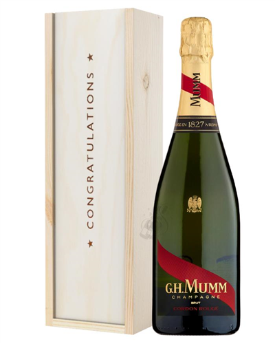 Mumm Cordon Rouge Champagne Congratulations Gift In Wooden Box