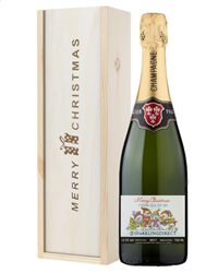 This personalised Champagne Christmas gift features a snowman design with the words 'Merry Christmas From all of us'. Add your family name, company name, instagram handle or hashtag to the label. Once you have personalised the Champagne Label you can add a further greeting card message during checkout which will be inserted in the box. This fantastic bottle of Paul Langier Brut Champagne will be packaged into our classic wooden box which has the words ‘Merry Christmas’ printed on the lid. Choose next day delivery or the date of your choice.