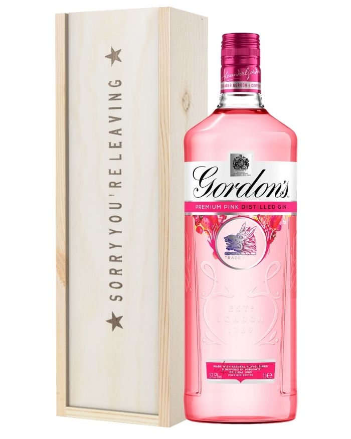 Vivid in colour and delicious in flavour, this Pink Gin Sorry You Are Leaving Gift boasts truly extraordinary quality that no other gift option can match. Complete with a single bottle of Gordon’s Premium Pink Distilled Gin and offering the tantalizing taste of strawberries, raspberries, red currants and more; from start, to finish this remarkably unique gift box is made to satisfy the taste buds of any gin-lover in your life that is moving on to a new stage in theirs. Simple to personalise with a message from you as well, this gift set comes presented in a sturdy wooden gift box and features the words, Sorry You’re Leaving on top for all to see.