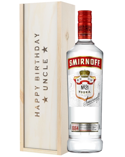 Help your Uncle get the party started with this fun and delightful Vodka birthday gift. Let him celebrate with cocktails made using the famous and highly popular Smirnoff Red Label Vodka. This gift contains a single bottle packaged in one of our classic wooden gift boxes with ‘Happy Birthday Uncle’ printed on the lid. You can complete this gift with a personalised and printed message to extend your birthday wishes. Plus, you can have it delivered either the next day or on a selected date anywhere in the UK. So no matter where he is, you can send the birthday party straight to him. It’s the perfect party gift for any Uncle!